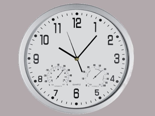 Exclusive, pioneering CrisMa designed wall clock with detachable plate for the easiest clock face branding solution ever! Featuring hygrometer and thermometer.